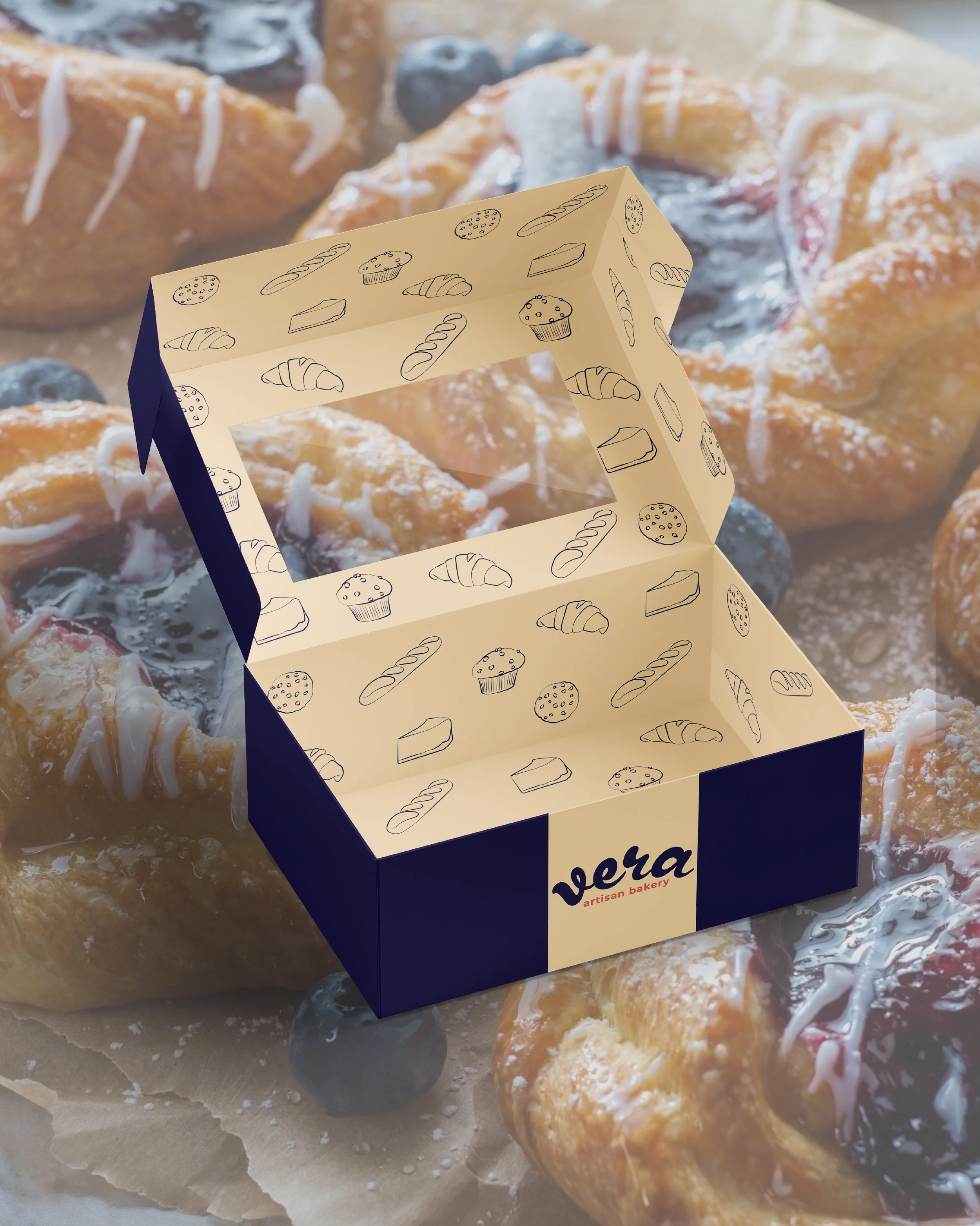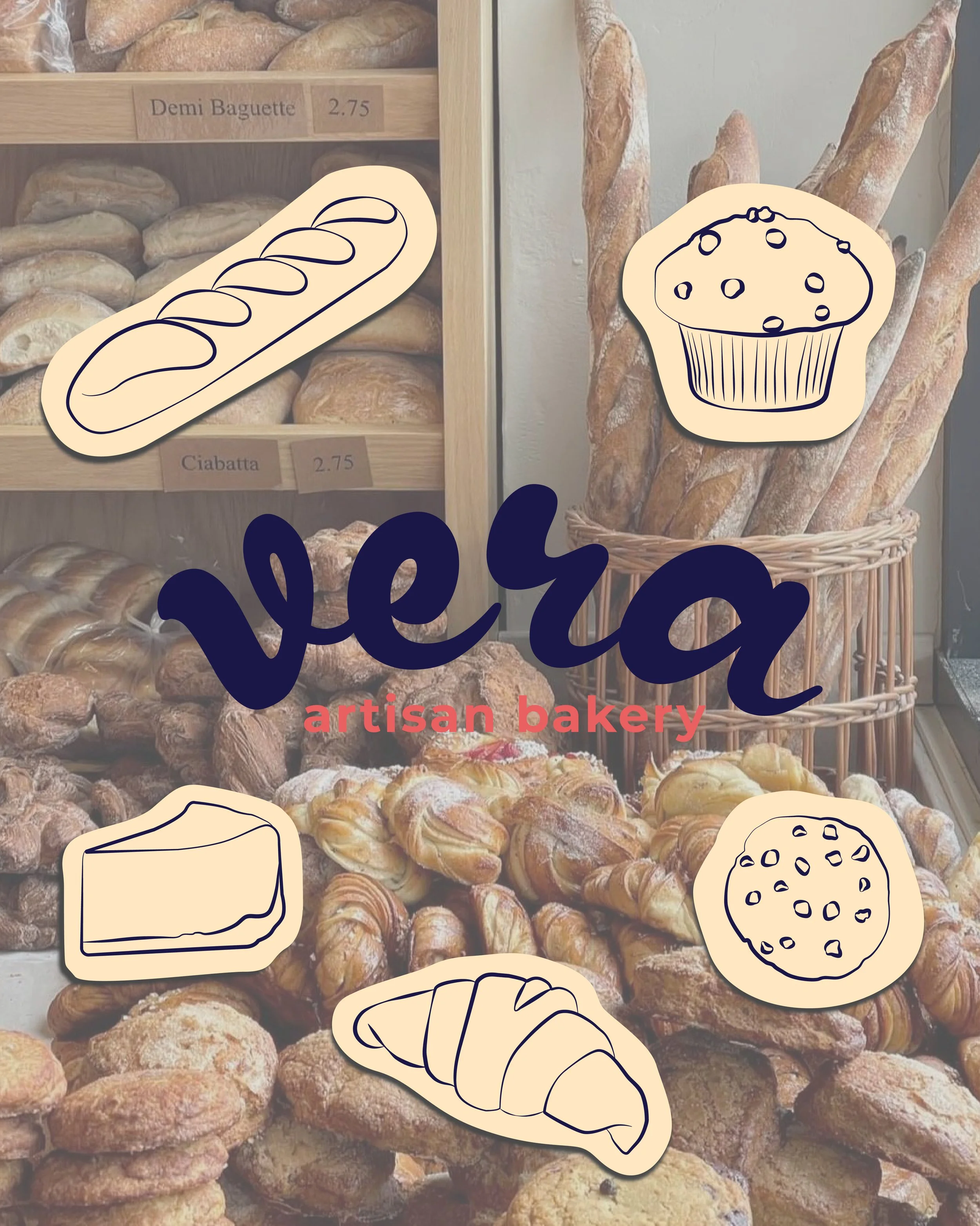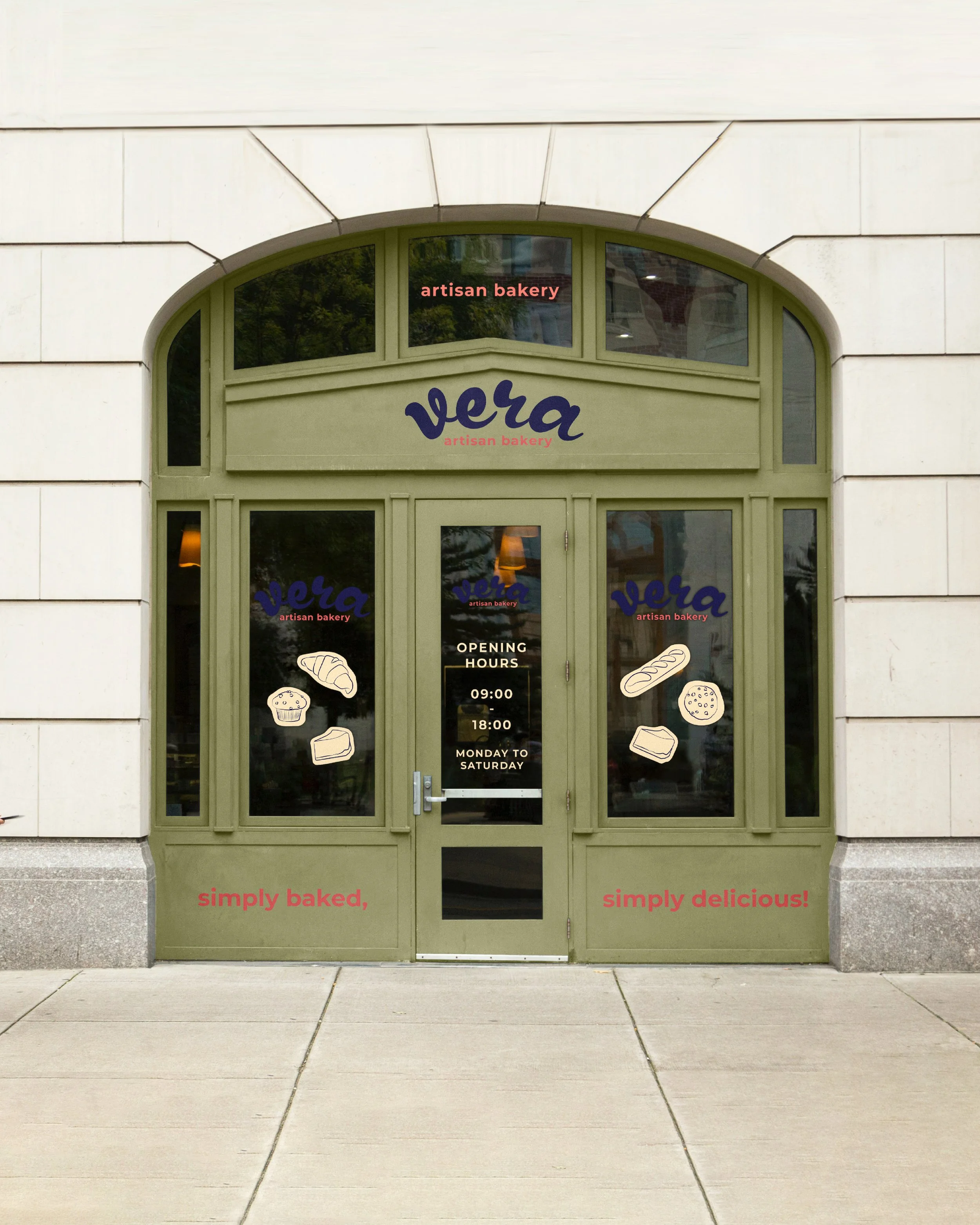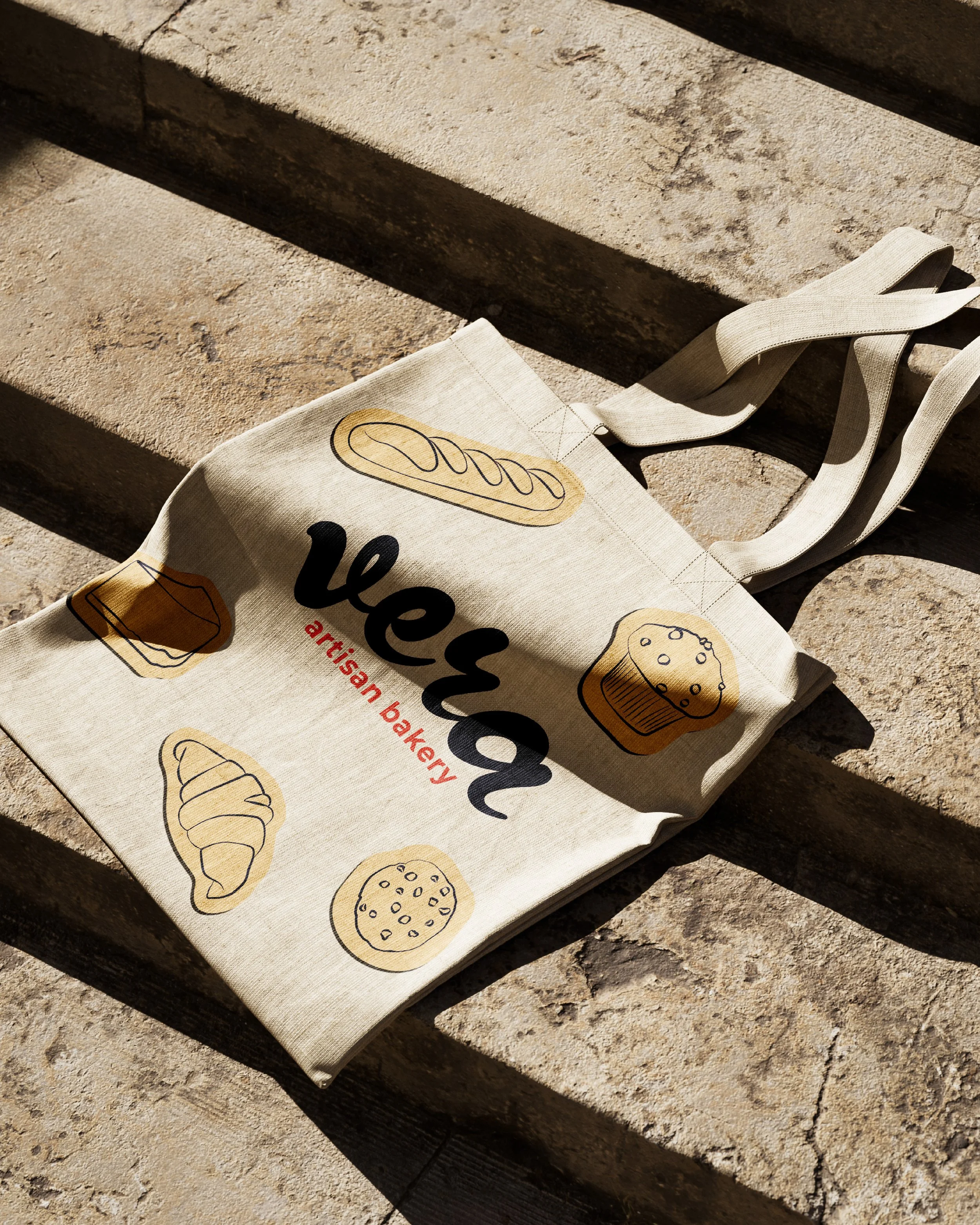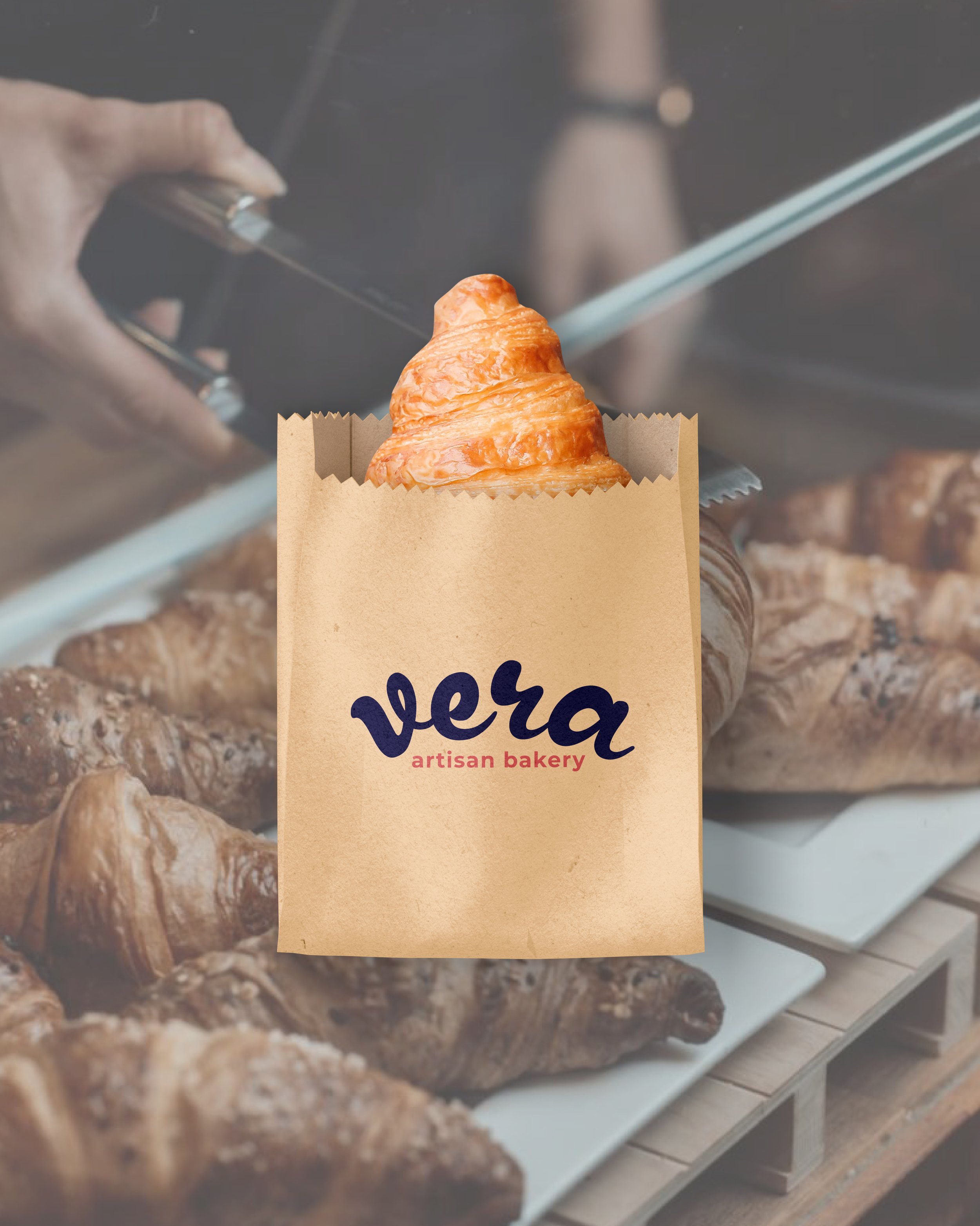 Visual identity concept for Vera Artisan BakeryFor Vera, an artisan bakery, we created a warm and modern brand that reflects craft, quality, and the simple joy of good bread. Complete brand identity desing: Logo design + Packaging design + Storefront sign design
